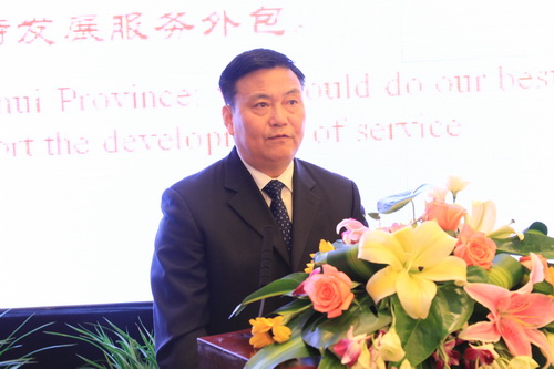 Fang Xiping, Director-General of the Bureau of Commerce of Anhui Province addresses on the MaAnshan Investment Environment Promotion meeting